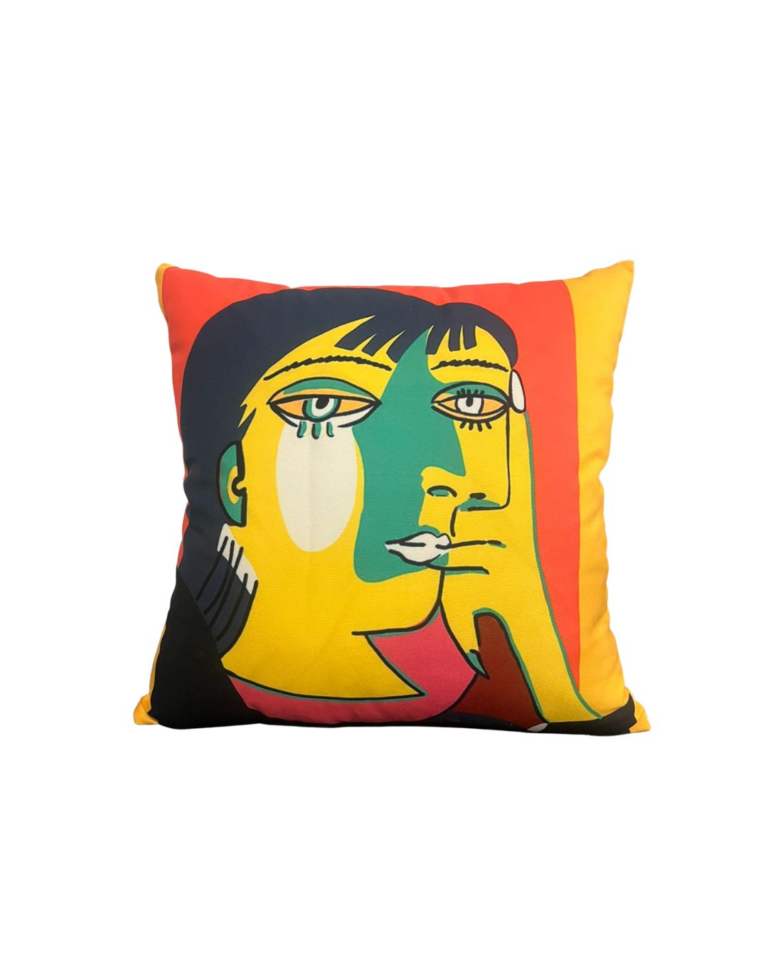 Le look “Picasso” : Des visages abstraits et des couleurs flashys pour donner un coup de pep’s immédiat à un canapé gris ou beige.