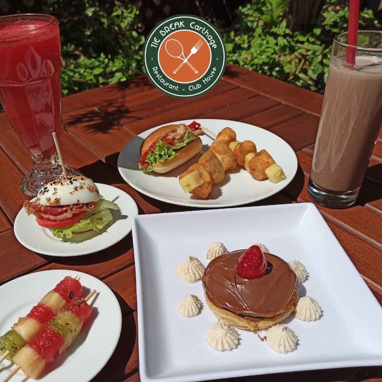 Situé dans les jardins du tennis club de Carthage, à proximité des terrains en terre battue, le restaurant Tie Break offre une atmosphère conviviale et décontractée, idéale pour se détendre après une partie de tennis ou tout simplement pour passer un bon moment en famille ou entre amis.