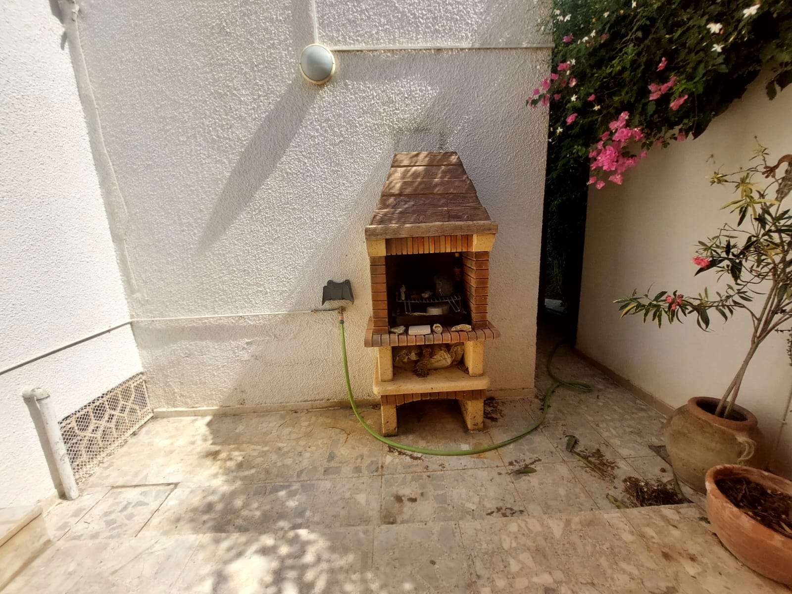 Extérieur : entrée voiture, piscine, jardin et espace barbecue